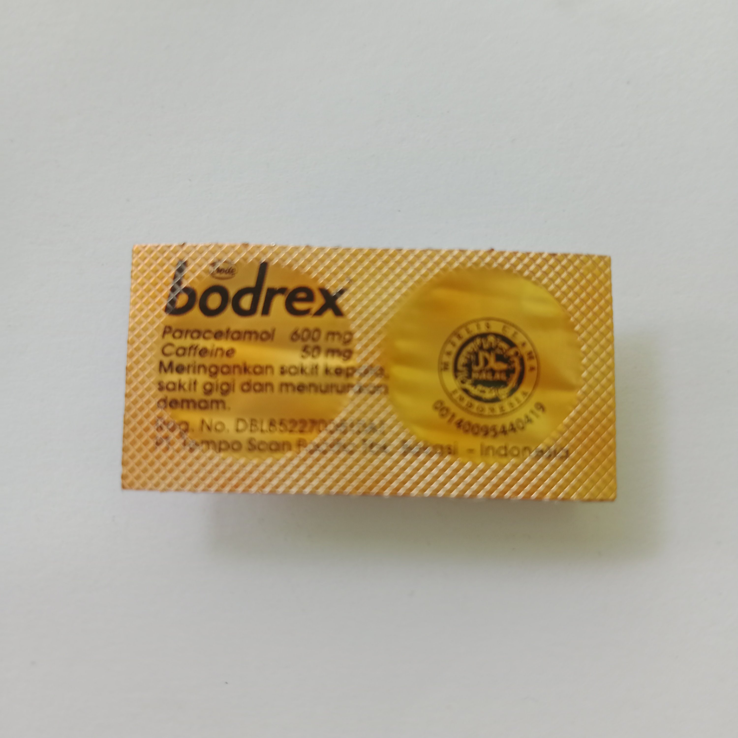 Paracetamol 600mgCaffeine 50mgMeringankan sakit kepala, sakit gigi dan demam.